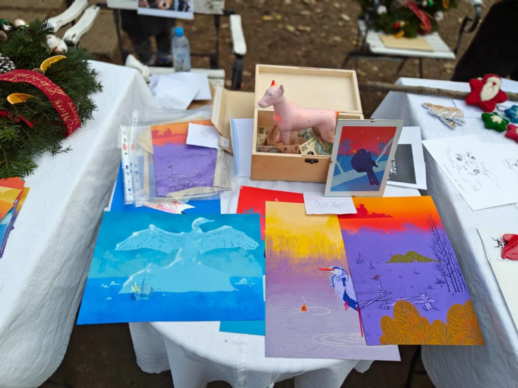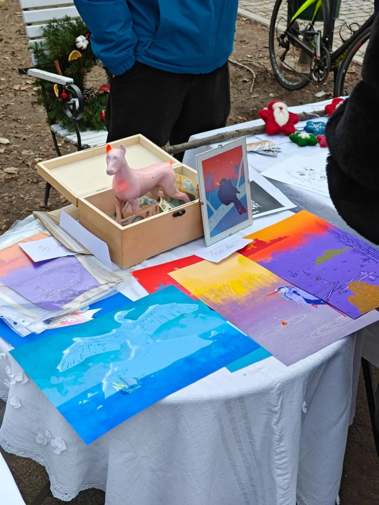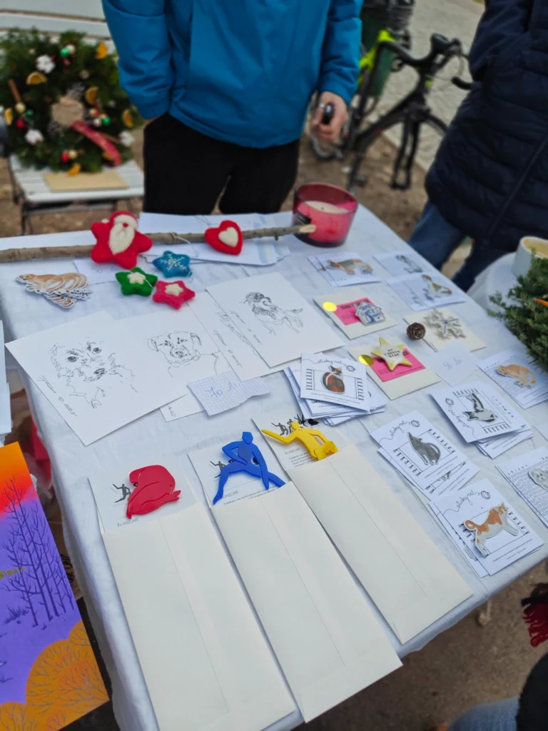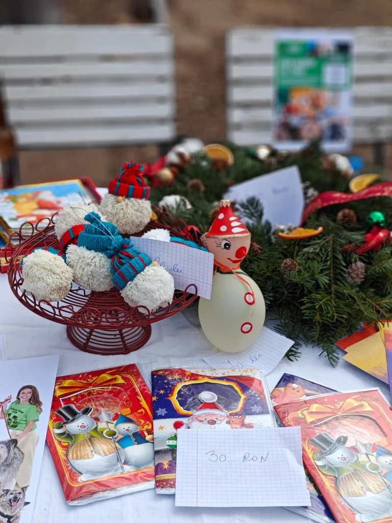 Ce găsești la mini-târgul nostru: voie bună, atmosferă plăcută și multe felicitări unicat pentru Crăciun, prăjituri delicioase, ornamente pentru brad, decorațiuni și alte surprize, realizate special pentru acest târg de: