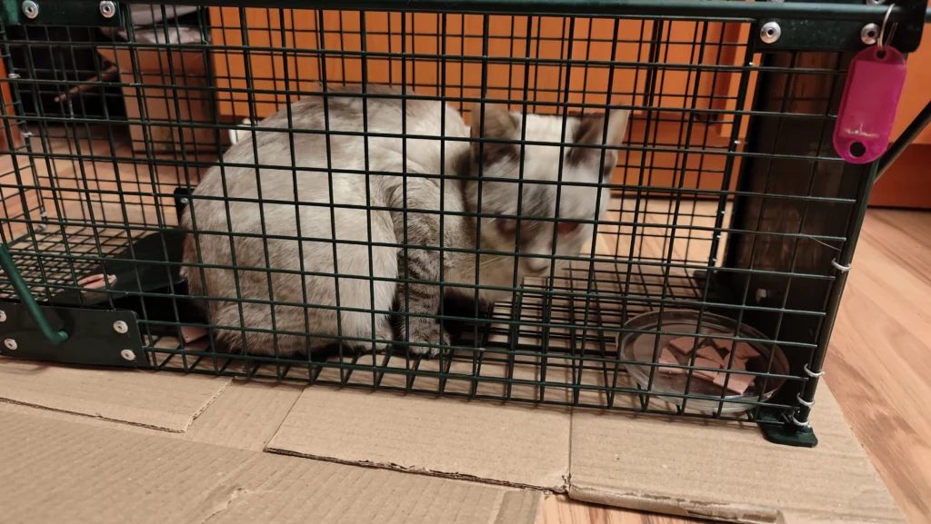 asa ca am zis sa ajut la prinderea micutei cu pricina cu o cusca capcana.