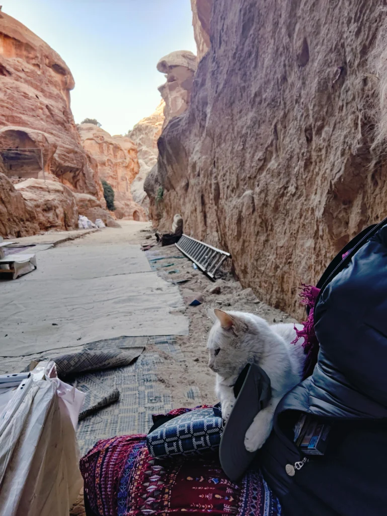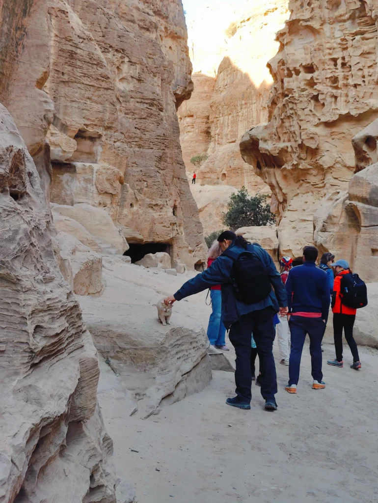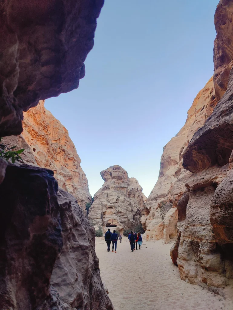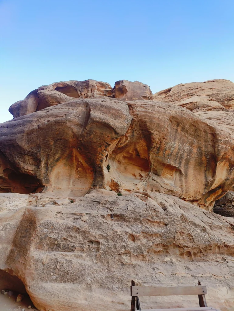 Prima oprire a fost Little Petra ca sa ne antrenam pentru adevarata Petra. Insa nu este nimic comparabil, pentru la Little Petra este o plimbare usoara si un pic de urcus [pentru cine doreste], pentru acele foste trepte de piatra sunt atat de tocite, incat de urcat le mai urci cum le urci, dar de coborat este imposibil. Adica sporturi extreme.