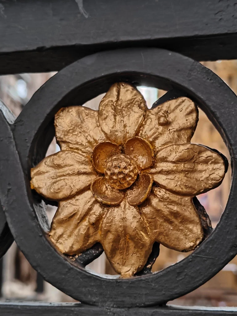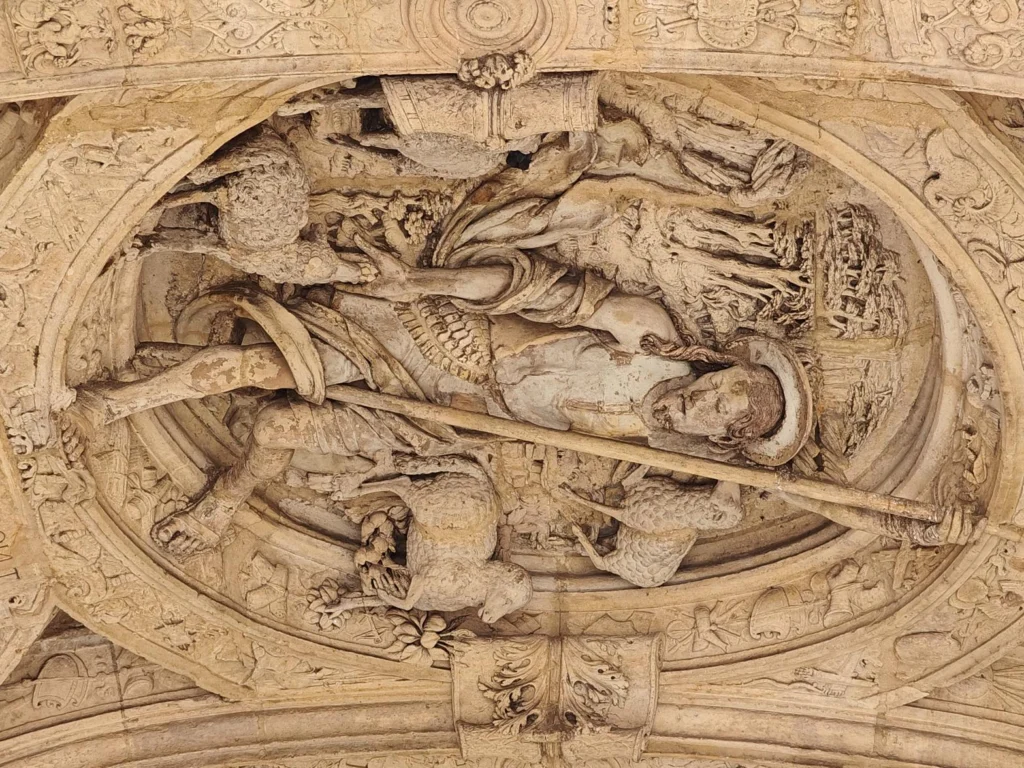 Un ceas astronomic renascentist montat pe o poartă pietonală.