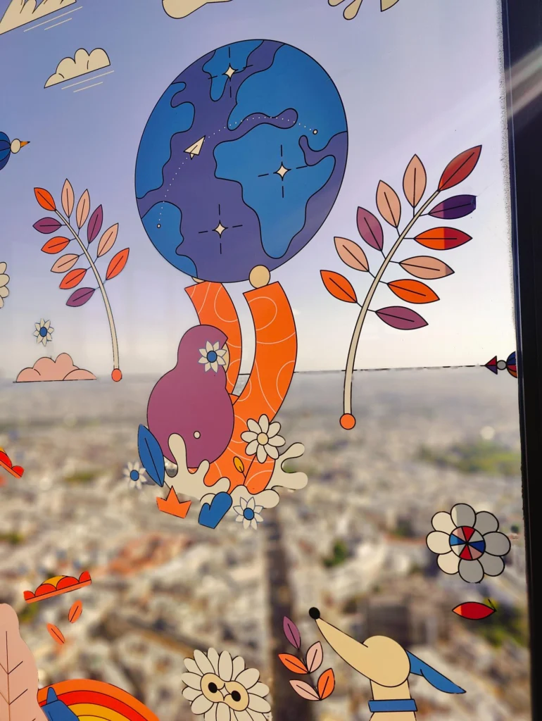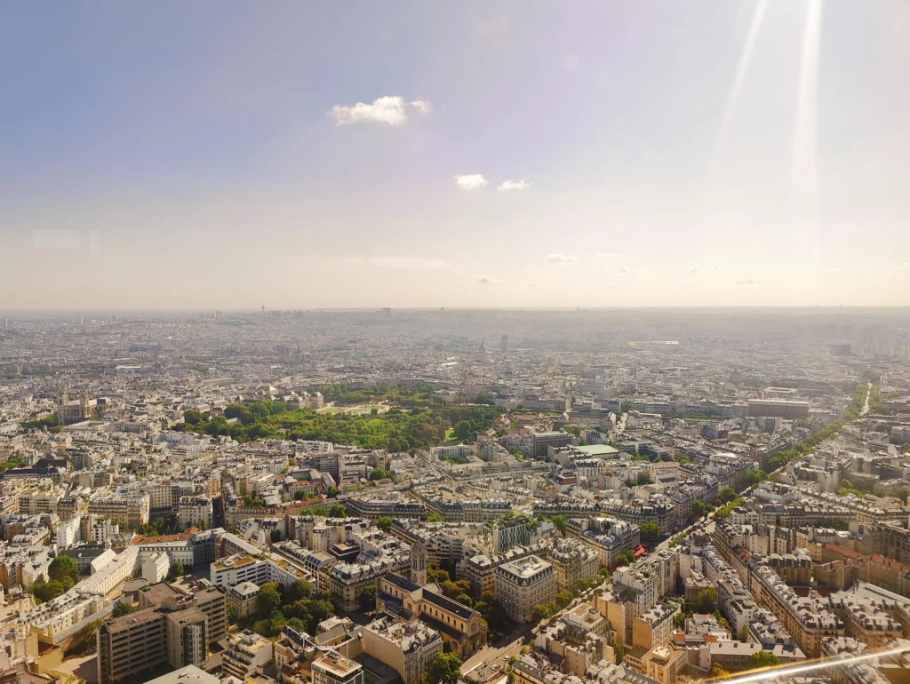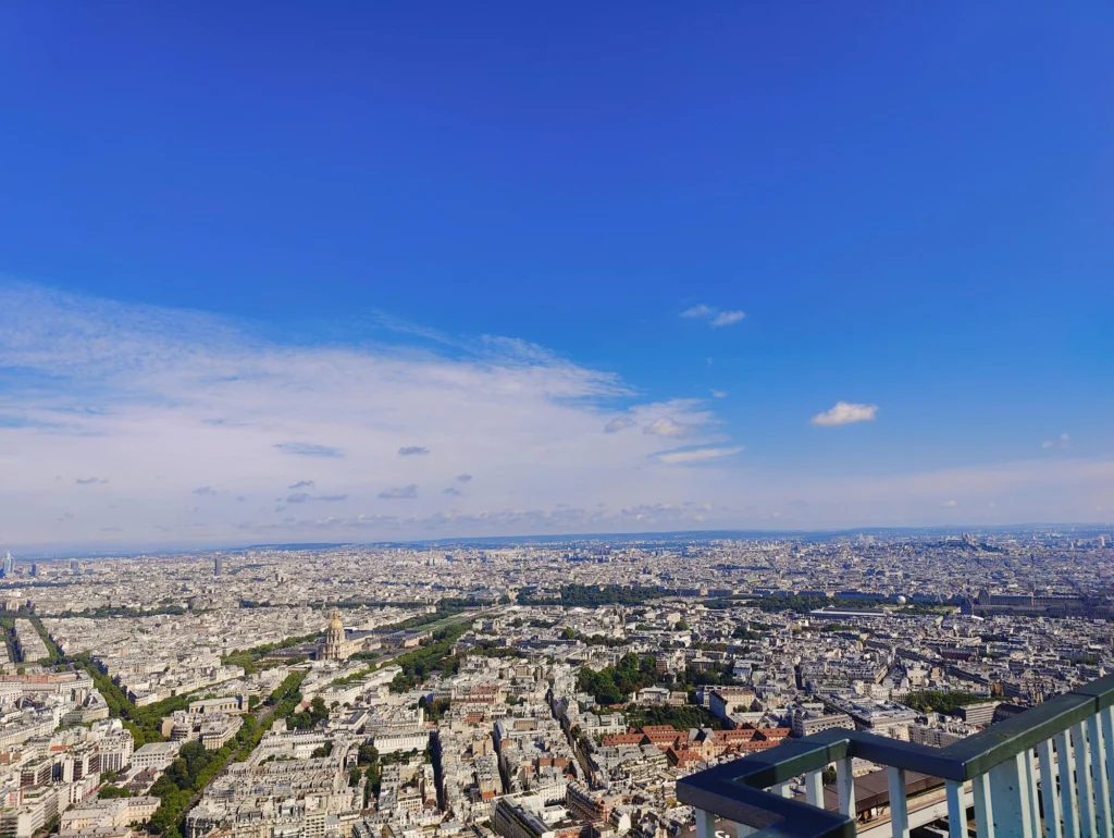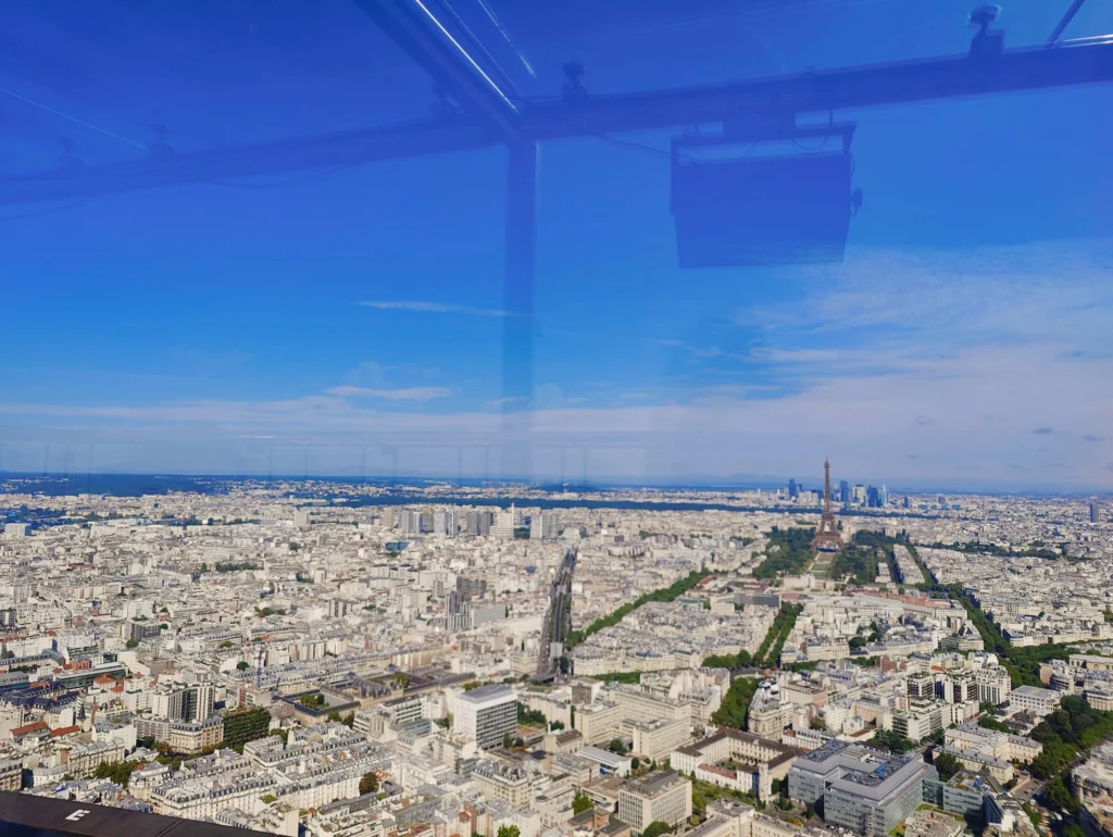 De pe acoperiș, poți vedea toate marile monumente: Turnul Eiffel, Sacré-Cœur, Arcul de Triumf, Notre-Dame, Les Invalides etc.
